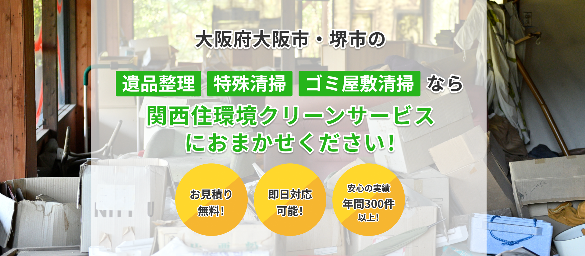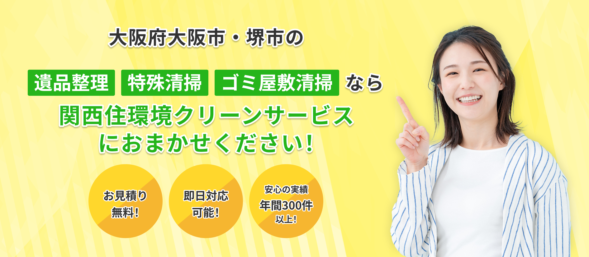 当社は大阪府大阪市・堺市を中心に、地域に密着したサービスをご提供しています。遺品整理や特殊清掃、ゴミ屋敷の片付けなど、迅速かつ柔軟に対応できる体制を整えており、地元の皆さまに安心してご利用いただけるよう心がけています。地理に詳しいスタッフが対応することで、現場の状況に応じた最適な作業をご提案可能です。初めての方もどうぞ安心してご相談ください。